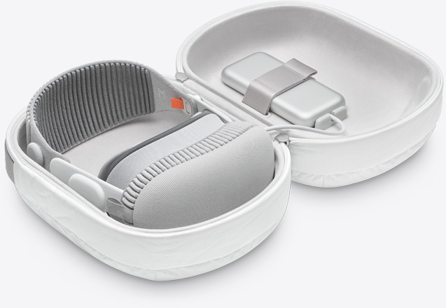单圈编织头带具有弹性,可枕靠、可透气、可拉伸,并有贴合度调节钮,可根据自己的头型调节 Apple Vision Pro 的松紧度。另有双圈头带可供选择,满足个人化的佩戴需求。电源:
