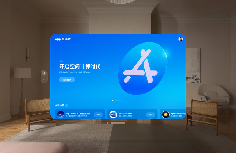 Apple Vision Pro 的 App Store 拥有专为 visionOS 打造的突破性 app,能营造非凡的空间体验,还有众多兼容的 iPad 和 iPhone app。从电影、游戏、体育、时尚到商务,不但样样俱全,而且面目一新。