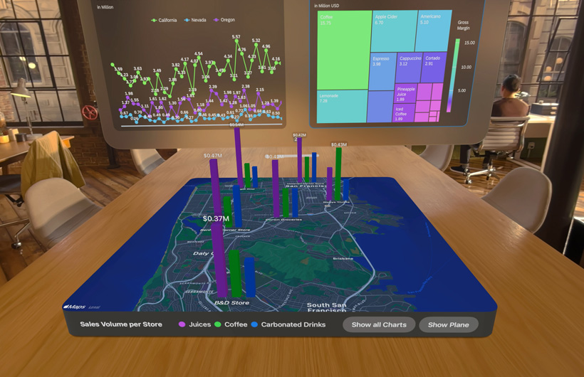 Apple Vision Pro 带来创新的工作方式,定能助你一臂之力。在无边的画布上,生动呈现各项数据和设计;在沉浸的环境里,进行项目指导和培训模拟,优化团队的合作与沟通。