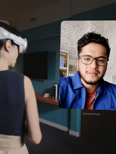 进行 FaceTime 通话时,通话对象的窗口会出现在你的空间里,由你放大或缩小。借助空间音频技术,你能听到对方的声音来自其所在窗口的位置,令通话就像面对面交谈一样自然。